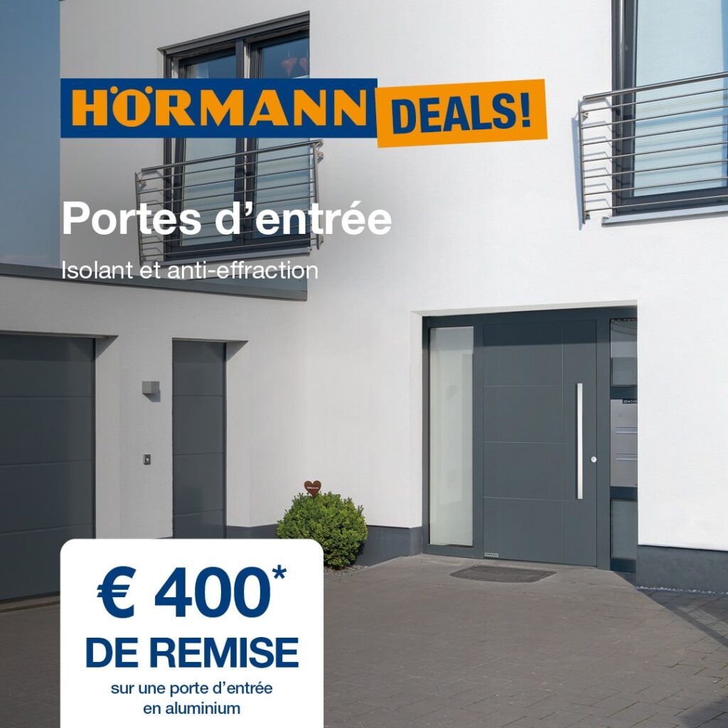 Hoermann propose de série et sans supplément de prix toutes les portes de garage, les motorisations, les portes d’entrée, les portes d’intérieur, les huisseries en acier, les portes en acier pour l’habitat ainsi que les espaces de rangement neutres en CO2.